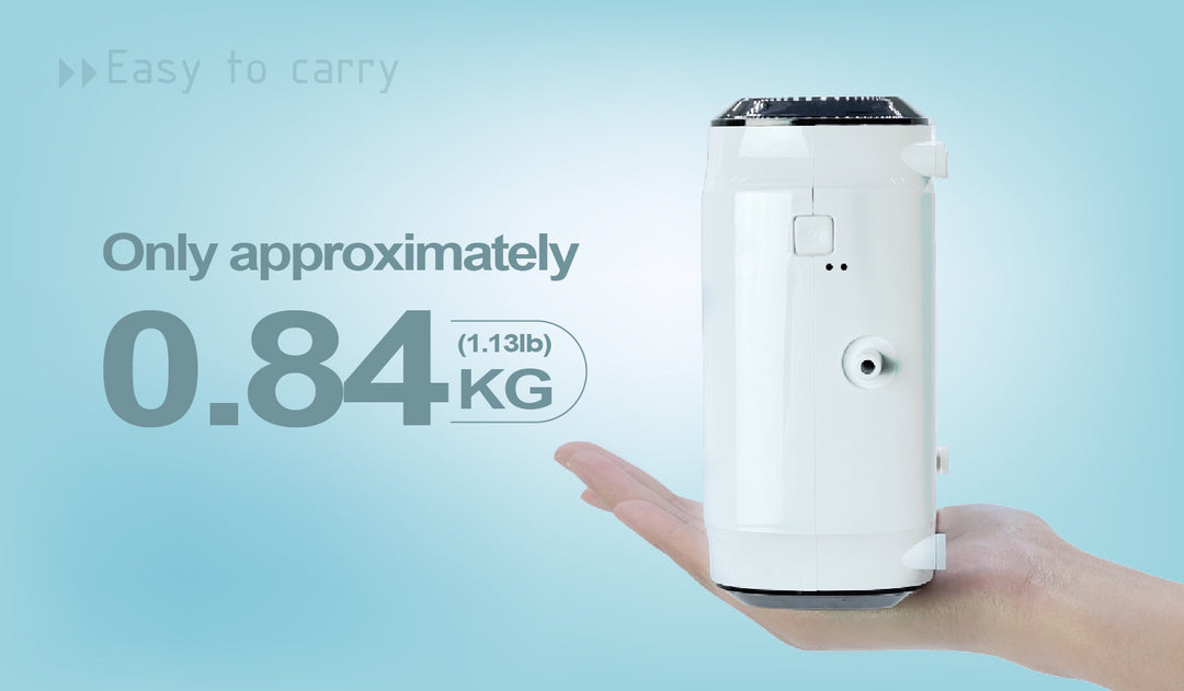Oxygen Care HC-30M is specifically designed to be compact and highly portable,allowing users to carry it effortlessly. It weighs just 0.84kg(1.8lb)and is only slightly bigger than your iPhone Its lightweight construction and ergonomic design make it ideal for individuals who are always on the move.Whether you are at home, traveling, or engaging in outdoor activities, Oxygen Care HC-30M ensures a continuous supply of oxygen, empowering you to live life to the fullest.