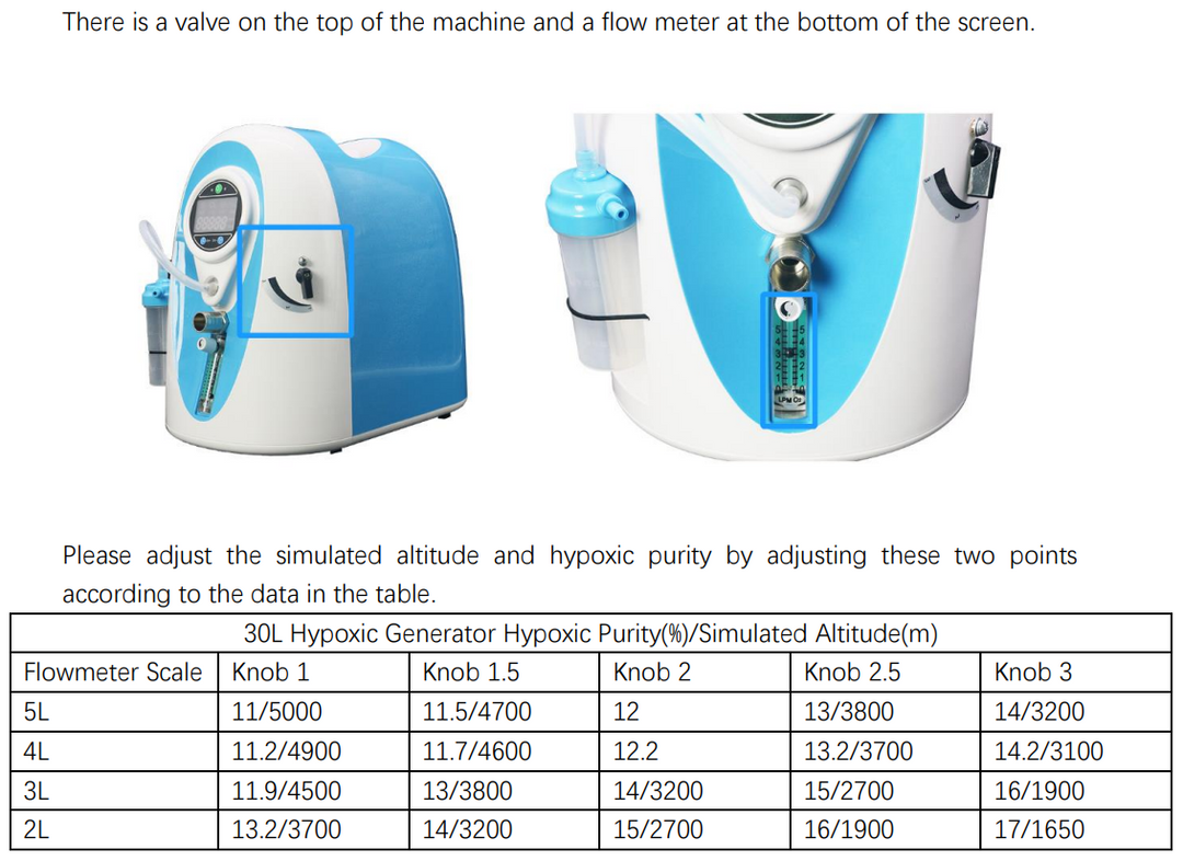 Adjust the simulated altitude by adjusting the two knobs on the machine.