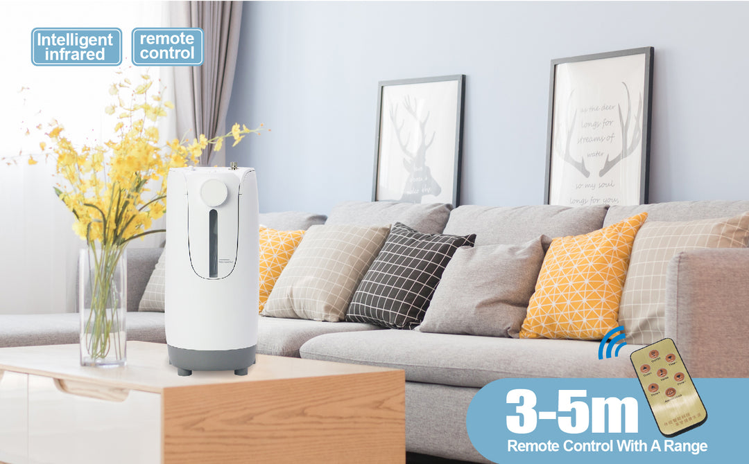 • Intelligent infrared remote control:There is no need to stand up frequently.Use the remote control to operate the oxygen concentrator.